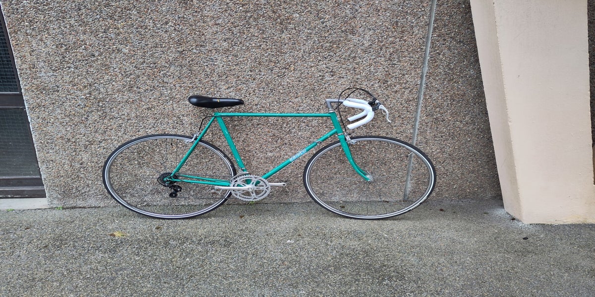 Sorti d’un garage et inutilisé depuis longtemps, ce vélo a beaucoup servi à son ancien propriétaire durant sa jeunesse. Le but était de le rendre plus brillant en nettoyant la rouille de ses roues ou tout le cambouis des équipements, mais aussi d’en faire un vélo vintage accessible avec des équipements de seconde main, moins chers. Il est maintenant prêt à retourner sur la route !